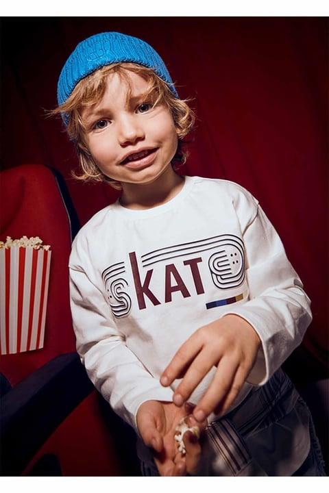 Mayoral Erkek Çocuk Üstü 4092 Krem, sportif bir dokunuşa sahip, uzun kollu, şık bir üsttür. Göğüs kısmındaki cesur "SKATE" grafiği, eğlenceyi ve stili seven aktif erkek çocuklar için mükemmel bir seçimdir. Yumuşak pamuktan üretilen bu çok yönlü krem tişört, günlük kullanım için kapüşonlu üstler, eşofman altları veya kot pantolonlarla üst üste giymek için idealdir.